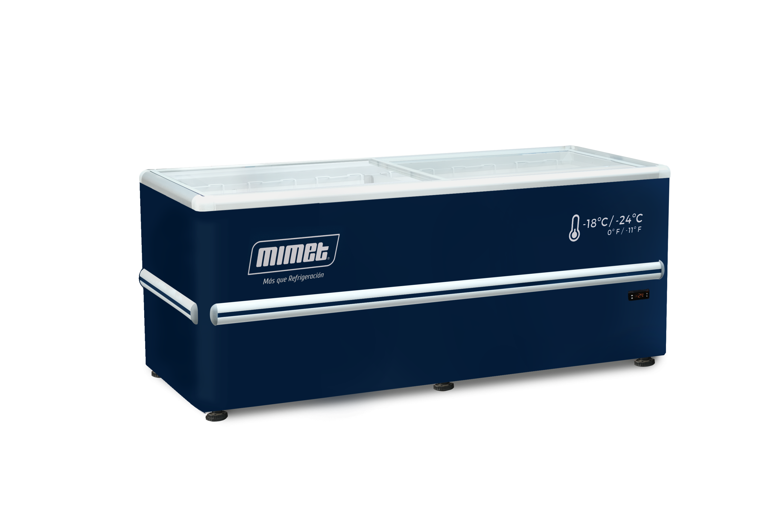 Marco superior de aluminio con sistema anti condensación que evita la perdida de frío.